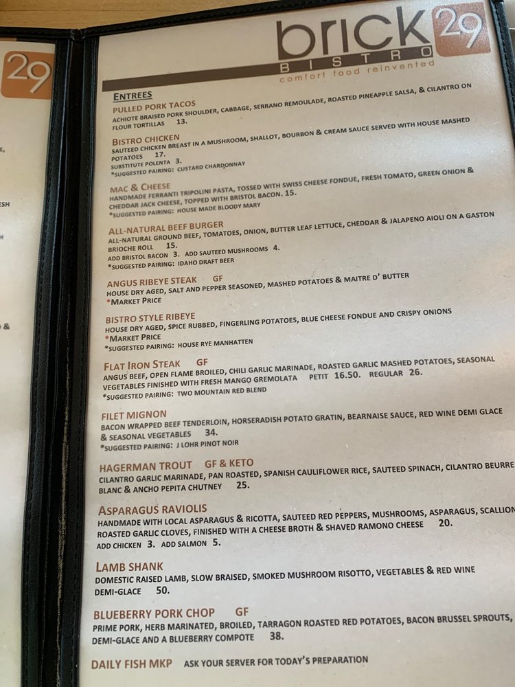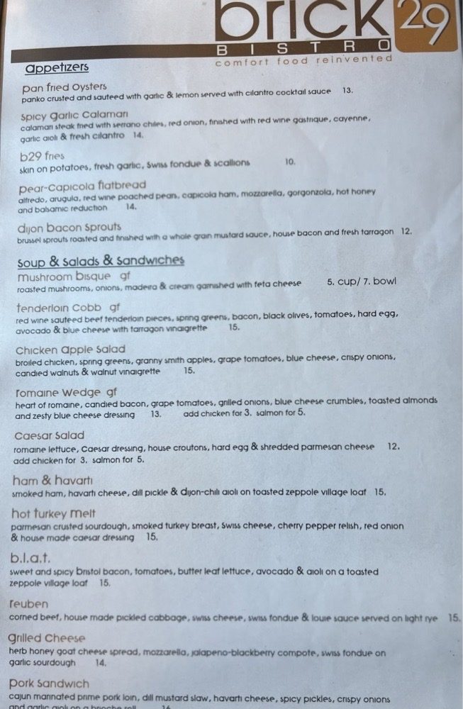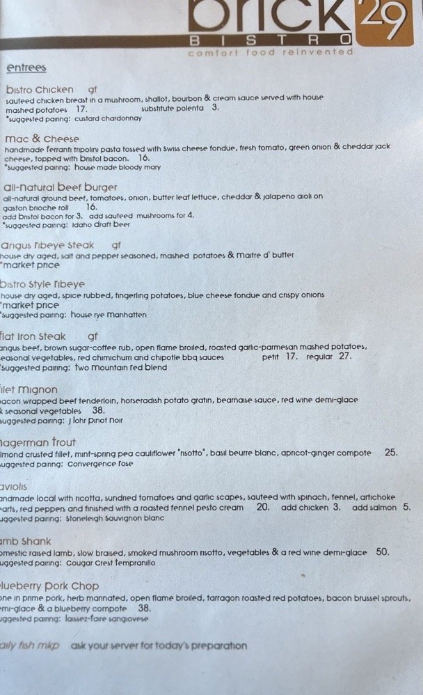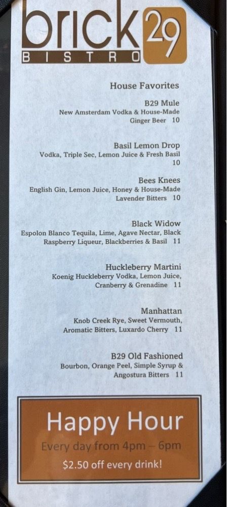 Brick 29 Menu (2025 Update)
